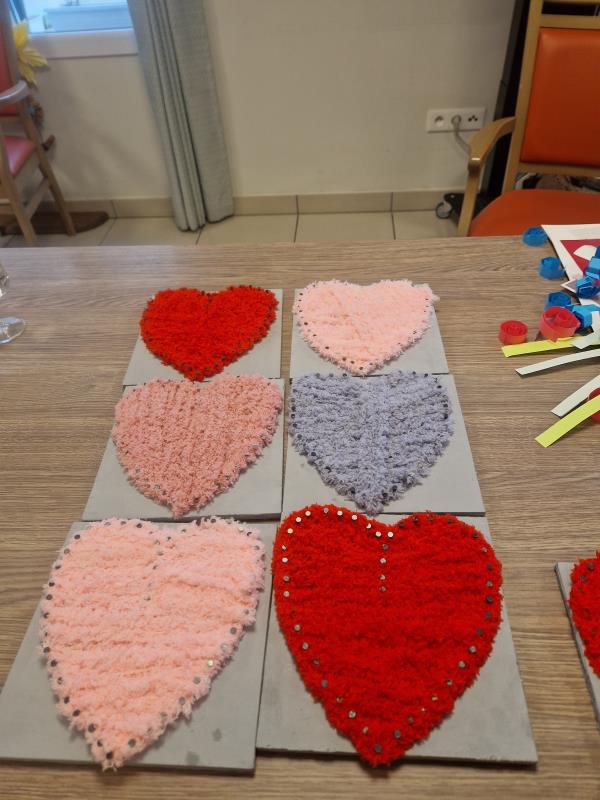 14 février jour de la saint valentin, nous avons donc réalisé des cœurs en string art. Les résidents ayant réalisé le tableau ont pu ainsi décorer leur chambre avec leur œuvre.
