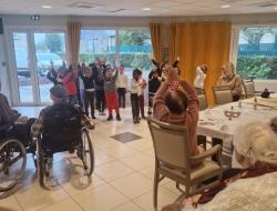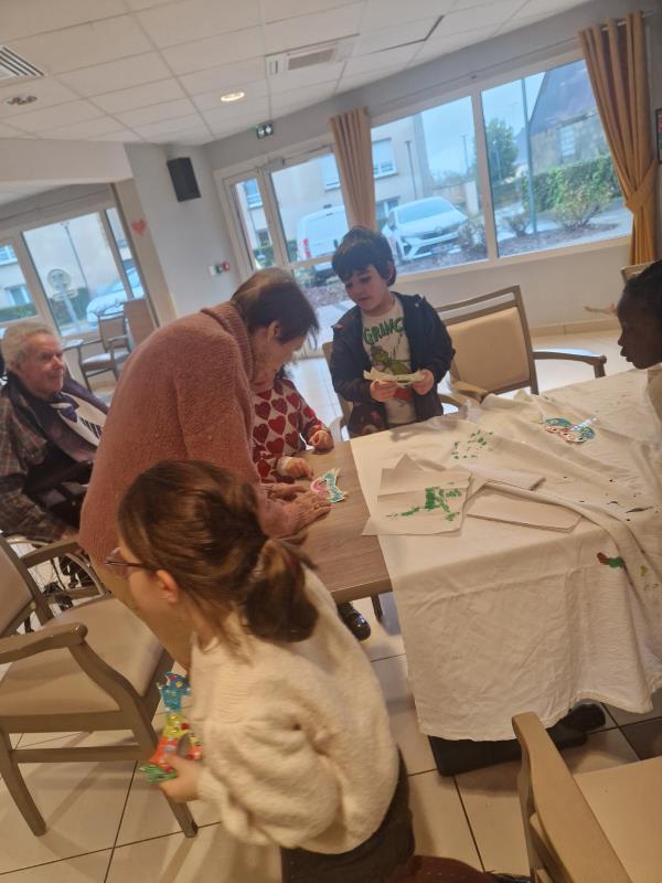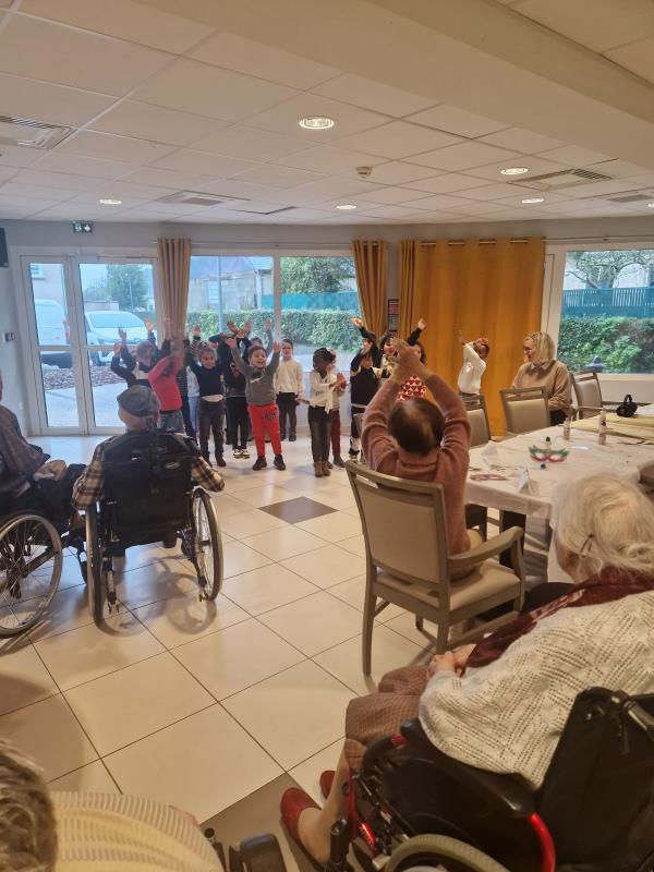 Hier après midi nous avons reçu les enfants de la classe de grande section du groupe scolaire Pierre Mendes France. Nous avons réalisé une activité masque de carnaval puis les enfants nous ont fait la surprise de pousser la chansonnette et avant de partir nous avons partagé les gaufres que Gwendoline et deux résidentes ont préparé. Les résidents étaient ravis.