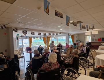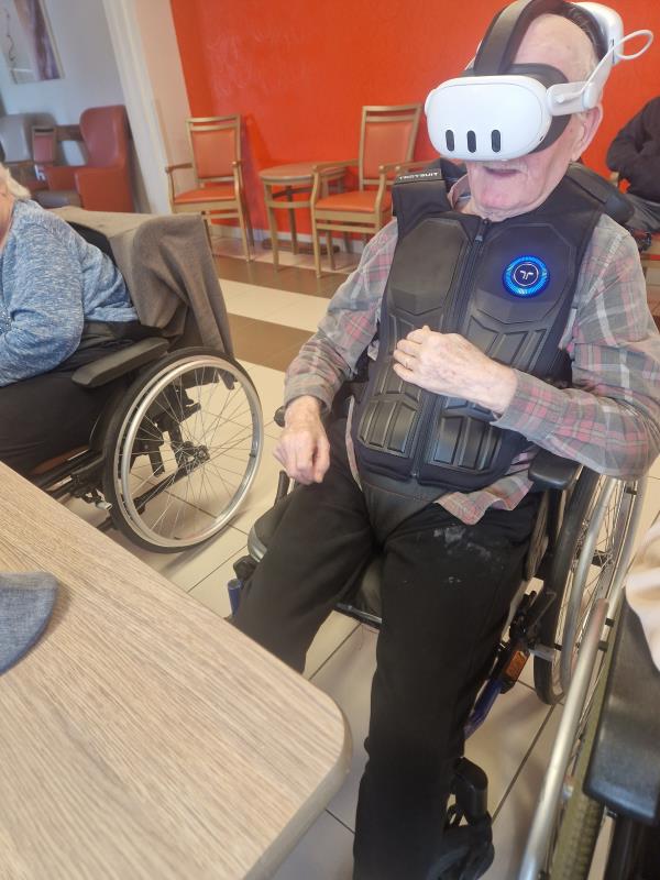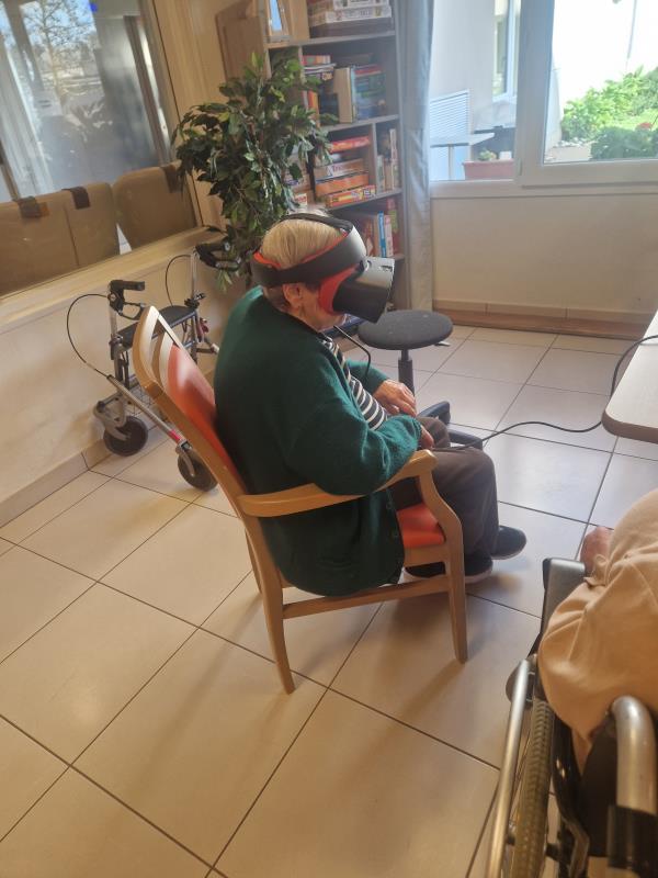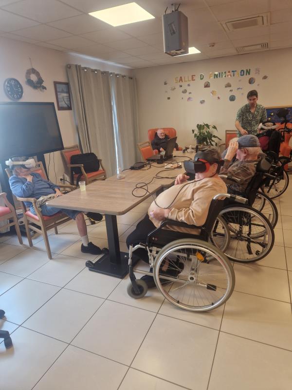 Hier nous avons eu une séance de réalité virtuelle. Les résidents ont pu faire du manège à sensations, voyager à travers la savane, nager avec les dauphins tout en restant assis sur leur chaise. Une expérience toujours autant appréciée!